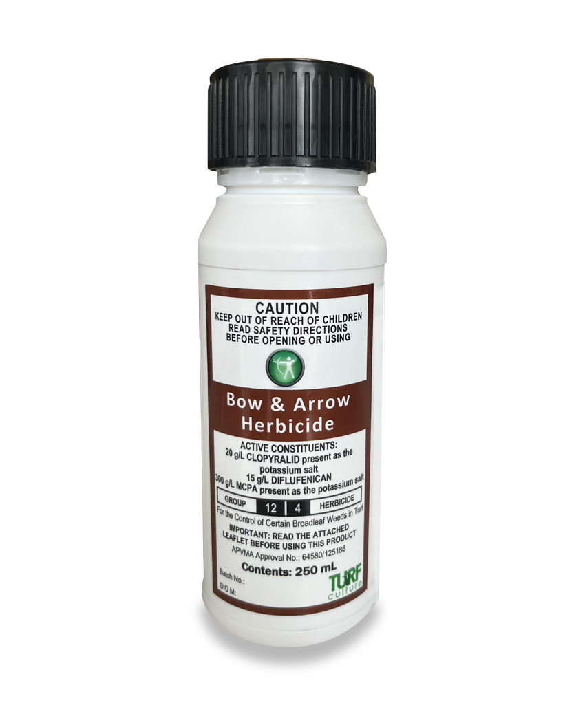 Bow and Arrow Herbicide is formulated to kill a range of broad leaf weeds in comman grasses such as buffalo grass, kikuyu grass and couch grass. Weed killer that controls White Clover, Plantain, Capeweed, Cat’s ear, Bindii , Cudweed, Creeping oxalis.
